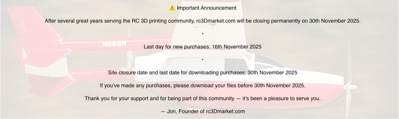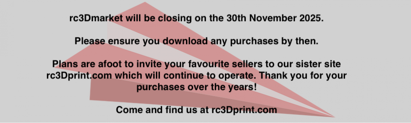 rc3Dmarket is dedicated to 3D printed RC. We want to make it the home of 3D printed RC on the web but we can only do that with your help.This site came to be after my own frustrating experiences where the visibility of my own models on Cults3D was found to be so poor due to the sheer number of digital files available in the search results, many of them seemingly unrelated to my search term. We offer the same commission as other similar sites but also have a dedicated social media following. Each month featured models will take centre stage on the home page and new uploads will get promoted on social media. In short you should upload your models to rc3Dmarket because we offer better visibility and more promotion.