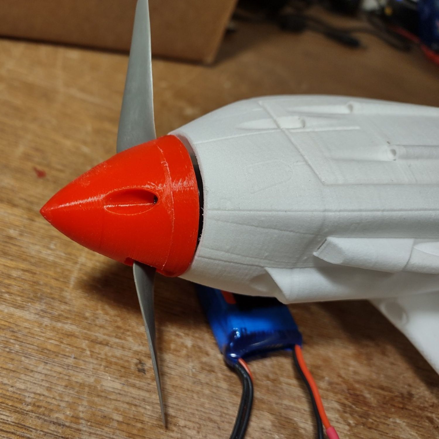 This spinner has been designed to fit the light Mig-3 with a 600mm wingspan driven by a 1806 BL motor, created by Victor and available here: